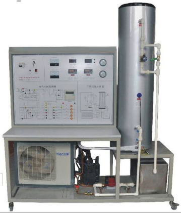 空氣源熱水器、循環(huán)水箱、保溫水箱、四通換向閥、數(shù)顯功率表、電流表、電壓表、不銹鋼水箱、