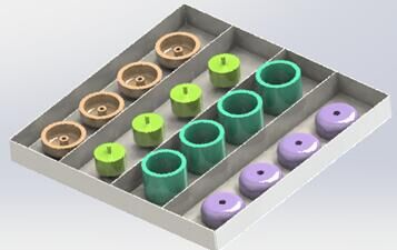 圓柱形外裝配工件 9 個、圓柱形內(nèi)裝配工件 9 個、方形碼垛工件 12 個、焊接 / 打磨工件 10 個 |