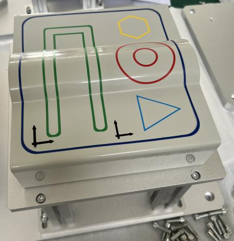 3 運動軌跡模塊: TCP 練習(xí)區(qū)主要作為工業(yè)機(jī)器人的基礎(chǔ)學(xué)習(xí)環(huán)節(jié),能動態(tài)直觀的體現(xiàn)出 TCP 示教的重要性和示教的精度,能夠自由更換示教尖端;可實現(xiàn) TCP 標(biāo)定練習(xí),提供 TCP 標(biāo)定用錐形教學(xué)塊;可實現(xiàn)基本軌跡編程練習(xí),提供三角形、方形教學(xué)軌跡;可實現(xiàn)復(fù)雜軌跡編程練習(xí),提供曲線教學(xué)軌跡;