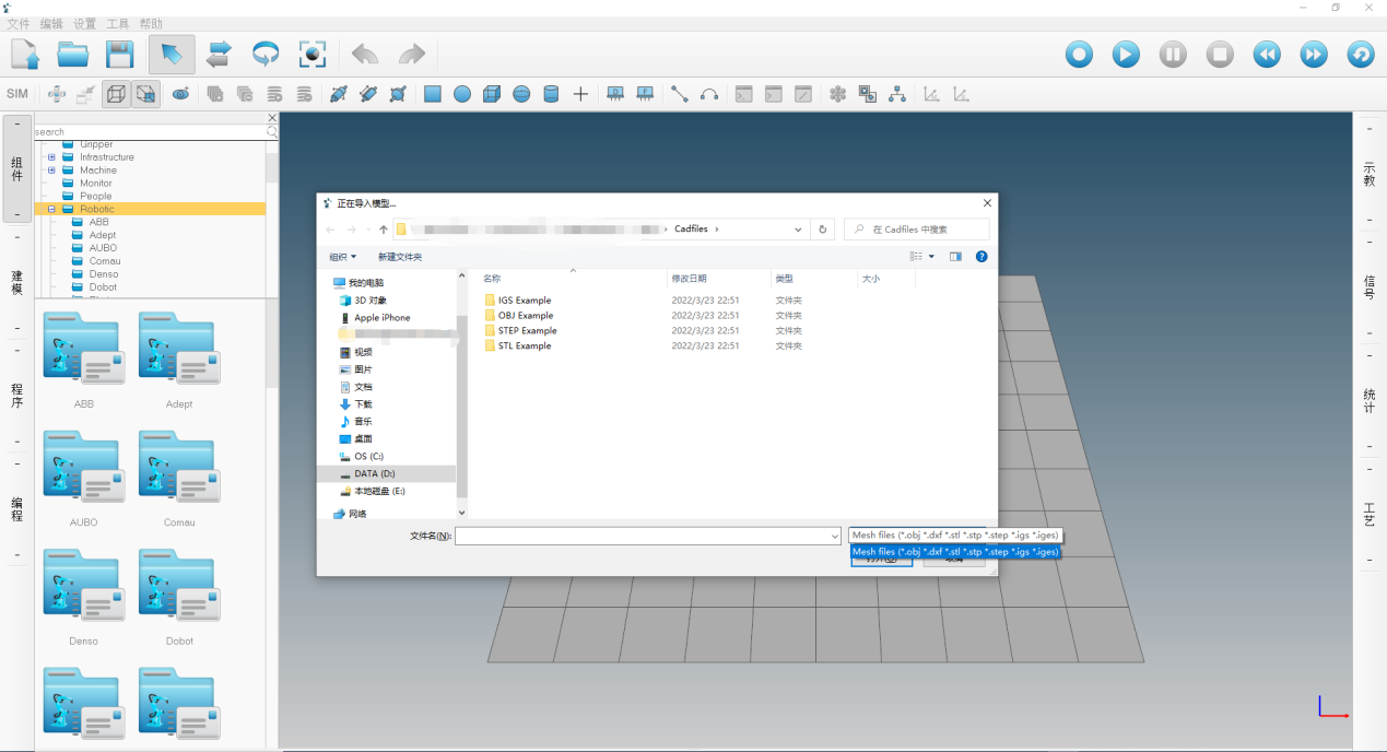 2 )支持多種格式的三維 CAD 模型,可導(dǎo)入擴展名為 step 、 igs 、 stl 等格式;