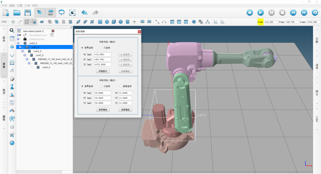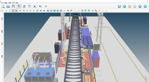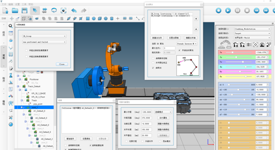 9 )支持多機器人同步運動仿真,能夠?qū)崿F(xiàn) 5 個及以上機器人與外部軸的同步運動