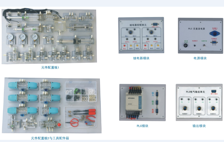 液壓實(shí)驗(yàn)元件1套,液壓實(shí)驗(yàn)PLC電氣控制系統(tǒng)1套;液壓實(shí)驗(yàn)繼電器控制模塊1套;液壓實(shí)驗(yàn)泵站1臺。(計(jì)算機(jī)根據(jù)學(xué)校要求另行配置)。實(shí)驗(yàn)臺設(shè)計(jì)有專用的原件配置板,每個(gè)元件都有一個(gè)固定的放置位置。有利于實(shí)驗(yàn)器件的管理。配備了:雙作用油缸(帶行程撞塊)、彈簧回位油缸、液控單向閥,減壓閥,輔助油箱,壓力繼電器,增壓油缸,節(jié)流閥(直動式),單向閥,順序閥等常用的液壓元件。