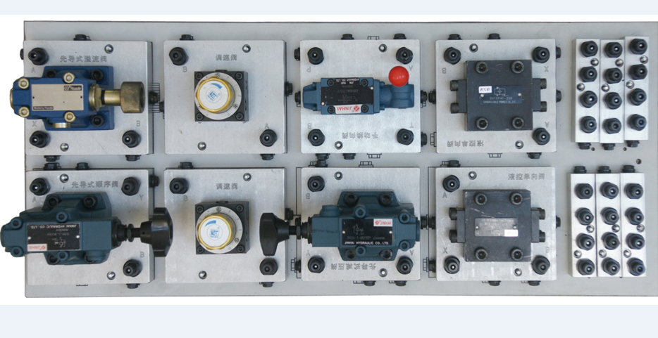 液壓實(shí)驗(yàn)元件主要采用北京華德液壓、天津天二液壓產(chǎn)品。便于了解掌握幾十種常用液壓元件的結(jié)構(gòu)、性能及用途。掌握幾十種基本實(shí)驗(yàn)回路的工作過(guò)程及原理。實(shí)驗(yàn)時(shí),組裝實(shí)驗(yàn)回路快捷、方便。同時(shí),配備獨(dú)立的繼電器控制單元進(jìn)行電氣控制,簡(jiǎn)單實(shí)用。