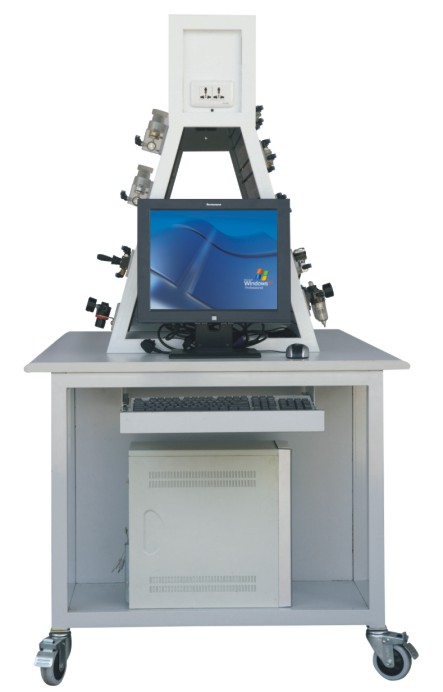 本實驗設備采用了多功能一體化鋼桌結構,整體焊接,表面噴塑,堅固耐用。鋼桌采用了雙面對稱結構,設計有元件存儲柜,工具資料抽屜,氣泵架位,電腦架位,可以附配電腦鍵盤抽屜。實驗臺采用了梯形雙立面結構,上面有氣動元件回路安裝區(qū),電器控制模塊安裝區(qū)。合理的實現(xiàn)了空間與功能的自由組合。它可以針對客戶的不同需求實行不同的配置,以及為今后的升級擴展提供了平臺。