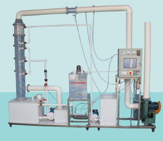 在現(xiàn)有的煙氣脫硫工藝中,濕法石灰石 / 石灰洗滌工藝技術(shù)最為成熟,運行最為可靠,應(yīng)用也最為廣泛,其脫硫原理以石灰或石灰石漿液與煙氣中的 SO 2 反應(yīng)生成亞硫酸鈣和硫酸鈣而進行脫硫的。但其系統(tǒng)較為復(fù)雜,且操作條件控制不好時易于出現(xiàn)結(jié)垢堵塞等問題。目前的主流脫硫塔均采用了較高的空塔氣速和較高的液氣比的空塔噴淋的方式進行氣液接觸吸收,吸收后的漿液通過曝氣氧化后生成含結(jié)晶水的硫酸鈣晶體,通過固液分離后得到石膏。本實驗裝置主要適用于石灰石漿液教學(xué)實驗及演示之用,著重于 SO 2 的吸收過程的試驗和演示,兼固石灰石吸收液的濃度控制,使有關(guān)人員更深刻的理解和掌握石灰石 / 石灰洗滌工藝的影響因素和操作要點??烧{(diào)節(jié)試驗不同空塔氣速、液氣比和入口 SO 2 濃度下的吸收效率。模型裝置配備了帶電腦輸出接口的自動數(shù)據(jù)測量、采集及處理系統(tǒng),便于對實驗數(shù)據(jù)的采集、記錄、處理和總結(jié);系統(tǒng)結(jié)構(gòu)設(shè)計時除考慮節(jié)約占地外還考慮了設(shè)備的實驗操作和維護的方便性(從防止結(jié)垢堵塞和清理的角度)。