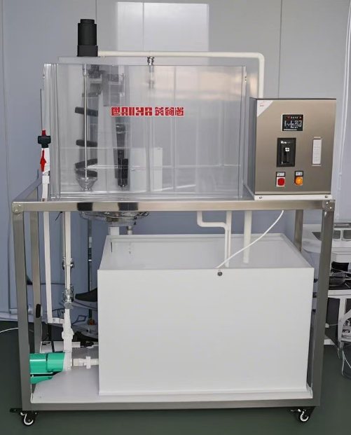 給水處理中澄清工藝通常包括混凝、沉淀和過濾,處理對象主要是水中懸浮物和膠體雜質(zhì)。原水加藥后,經(jīng)混凝使水中懸浮物和膠體形成大顆粒絮凝體,而后通過沉淀池進行重力分離。網(wǎng)格 ( 柵格 ) 絮凝 池就是混凝、絮凝沉淀兩種功能的凈水構(gòu)筑物。本模型就是展示絮凝反應(yīng)池和網(wǎng)格 ( 柵格 ) 絮凝 池內(nèi)部構(gòu)造的實驗裝置。