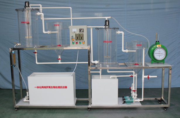 一體化兩相厭氧生物處理反應(yīng)器,采用多組多種形式的套筒將反應(yīng)器內(nèi)的空間有機(jī)地分割成產(chǎn)酸相生物處理反應(yīng)區(qū)、兩相厭氧過(guò)渡區(qū)、產(chǎn)甲烷相生物處理反應(yīng)區(qū)、泥水分離區(qū)、氣相區(qū)等,從而實(shí)現(xiàn)了兩相厭氧設(shè)備一體化的目的。本反應(yīng)器不僅管理操作簡(jiǎn)單、處理效率高,而且由于體積小、占地少,使工程造價(jià)降低,非常適合中小型高濃度有機(jī)廢水處理工程的推廣和應(yīng)用 的教學(xué)實(shí)驗(yàn)設(shè)備。
