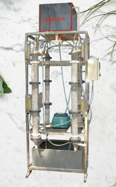 3 、配 原水箱攪拌電機 1 臺 、 304 不銹鋼攪拌槳 1 套;(功率 1 5W 、轉速 12 0rpm )、 (含調速器 1 只)、 4 、生物曝氣濾池 1 套(附 ?10 圓陶瓷環(huán)填料)、 透明有機玻璃材質、壁厚 10 mm 、 ? 10 0× 150 0mm 、、 帶 微 孔 曝氣 裝置