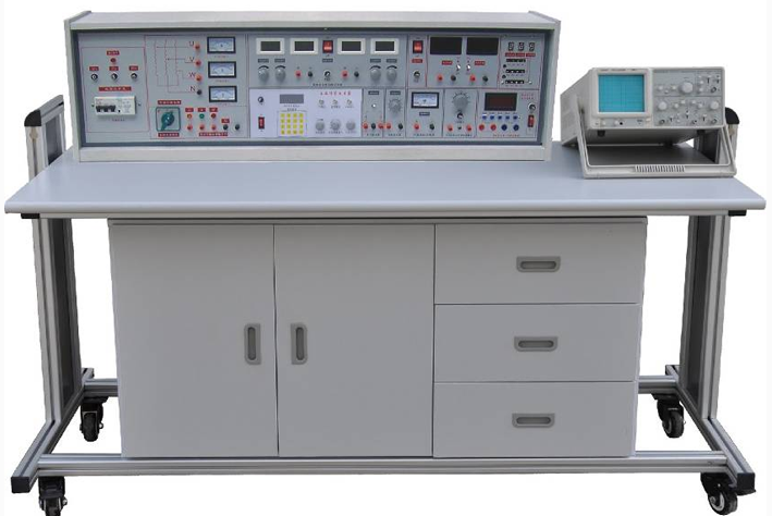 電工、模電、數(shù)電實(shí)驗(yàn)臺(tái)具有較完善的安全保護(hù)措施,較齊全的功能。實(shí)驗(yàn)操作桌中央配有通用電路插扳,電路板由 ABS 注塑而成,背面裝有壓鑄而成九孔成一組的銅片,表面布有九孔成一組相互聯(lián)通的插孔,創(chuàng)新實(shí)驗(yàn)元件模塊在其上任意拼插成實(shí)驗(yàn)電路。實(shí)驗(yàn)元件制成透明創(chuàng)新模塊,直觀性好,盒蓋印有元件符號(hào),線條清晰美觀。盒體與盒蓋采用較科學(xué)的壓卡式結(jié)構(gòu),維修、更換元件拆裝方便。元器件放置在實(shí)驗(yàn)操作桌下邊左右柜內(nèi),實(shí)驗(yàn)時(shí)取存方便,大大提高了管理水平,規(guī)劃化程度,大大減輕了教師實(shí)驗(yàn)準(zhǔn)備工作。
