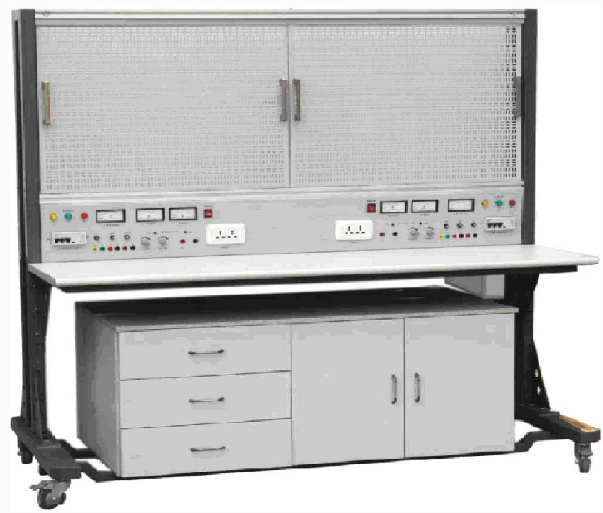 本實訓(xùn)臺由實訓(xùn)屏(內(nèi)置電源)、實訓(xùn)桌、實訓(xùn)儲物柜三大部分組成。