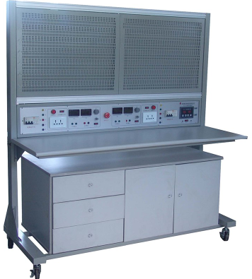 本實訓(xùn)臺由實訓(xùn)屏(內(nèi)置電源)、實訓(xùn)桌、實訓(xùn)儲物柜三大部分組成。