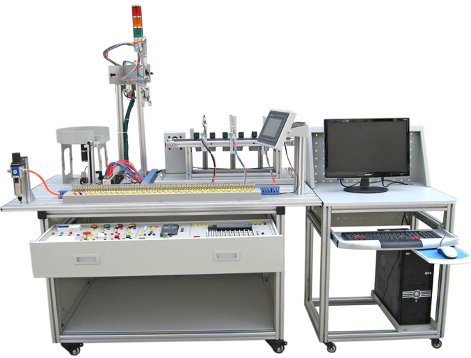 光機電一體化實訓(xùn)裝置 , 光機電一體化實訓(xùn)室設(shè)備是電氣自動化控制實訓(xùn)基地之一,光機電一體化實訓(xùn)裝置是集 PLC 控制、變頻調(diào)速控制、氣動控制、機械手控制、步進電機驅(qū)動、位置檢測于一體的綜合實訓(xùn)裝置。承擔(dān)著機電一體化技術(shù)、電氣自動化技術(shù)專業(yè)學(xué)生的電氣綜合實訓(xùn)教學(xué)任務(wù)和及社會電類相關(guān)專業(yè)的電氣綜合控制技能培訓(xùn)等教學(xué)任務(wù)。