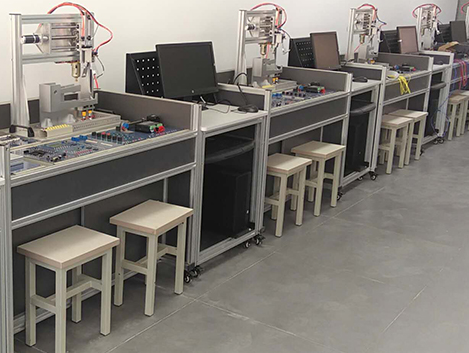 單片機(jī)控制功能實(shí)訓(xùn)考核裝置采用烤漆鋼板制作的臺(tái)式結(jié)構(gòu)。實(shí)訓(xùn)臺(tái)的抽屜柜用于存放實(shí)訓(xùn)模塊,抽屜柜與臺(tái)面之間布置實(shí)訓(xùn)模塊安裝支架,最上一層是工作臺(tái)臺(tái)面。用于技能競(jìng)賽時(shí)在臺(tái)面上放置設(shè)備安裝底板,在底板上安裝試題擬定的單片機(jī)控制裝置需要的模塊,連接控制電路,編寫的控制程序輸入單片機(jī)后,按下運(yùn)行指令開關(guān),單片機(jī)控制裝置就按程序運(yùn)行。