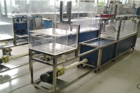 主要配置:移動(dòng)式不銹鋼實(shí)驗(yàn)臺(tái)架、實(shí)驗(yàn)工作槽、三角量水堰、回水蓄水槽、供水段穩(wěn)水頭部、多種實(shí)驗(yàn)?zāi)P?、測(cè)量?jī)x器、供水泵、流量調(diào)節(jié)裝置等組成,空間三疊層緊縮布置。
