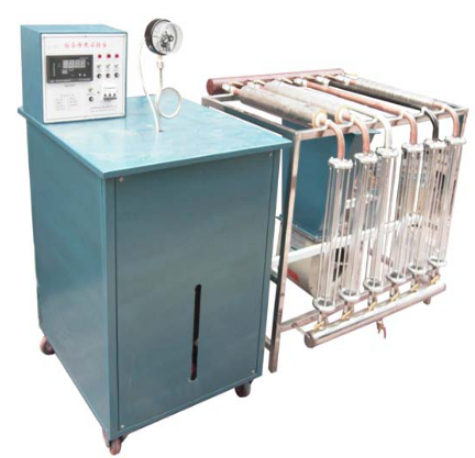 主要配置:控制臺、不銹鋼支架、由六組不同性能的傳熱管道(銅裸管、涂黑管、翅片管、玻璃絲棉保溫管、鋸末保溫管、鍍鉻管),蒸汽發(fā)生器、風機、壓力表等組成。