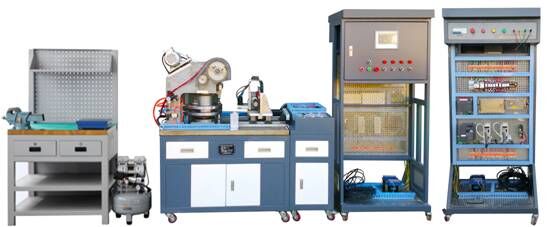 主要由實(shí)訓(xùn)臺(tái)、電氣控制柜(包括電源控制模塊、可編程控制器模塊、變頻器模塊、觸摸屏模塊、步進(jìn)電機(jī)驅(qū)動(dòng)模塊、伺服電機(jī)驅(qū)動(dòng)模塊等)、動(dòng)力源(包括三相交流電機(jī)、步進(jìn)電機(jī)、交流伺服電機(jī)等)、機(jī)械傳動(dòng)機(jī)構(gòu)、二維送料部件(十字滑臺(tái))、轉(zhuǎn)塔部件、模具、離合器機(jī)構(gòu)、機(jī)械式?jīng)_料機(jī)構(gòu)、裝調(diào)工具、常用量具、操作臺(tái)、型材電腦桌等組成。