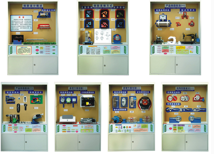 本陳列柜按國際標準流行設(shè)計,采用各種新穎機電產(chǎn)品外,欺其余模型全部用鋁合金和有機玻璃制作,每柜進行彩噴圖文說明,介紹機械創(chuàng)新設(shè)計的基本原理與方法,對提高機械創(chuàng)新意識與創(chuàng)新設(shè)計能力具有重大作用。是機械創(chuàng)新實驗室內(nèi)主要教學設(shè)備。