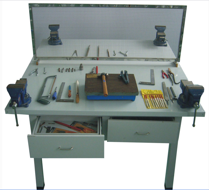 鉗工實(shí)驗(yàn)室(一張桌 4 座 / 組)每組詳細(xì)配置如下:可以完成常用工具的認(rèn)識(shí)和使用,錘、鋸、銼、鑿、劃線、裝配、調(diào)試、安裝、維修等教學(xué)工具。