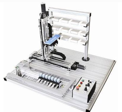 本裝置為實(shí)際自動(dòng)倉(cāng)儲(chǔ)系統(tǒng)的微縮,使用可編程控制器控制,設(shè)有12個(gè)貨位,在X、Y、Z軸三個(gè)方向上準(zhǔn)確地驅(qū)動(dòng)感應(yīng)電動(dòng)機(jī)進(jìn)行自動(dòng)儲(chǔ)存或取出儲(chǔ)存的成品,完善的執(zhí)行機(jī)構(gòu)可實(shí)現(xiàn)現(xiàn)代物流系統(tǒng)中自動(dòng)存儲(chǔ)系統(tǒng)全部動(dòng)作過程。PLC自備。