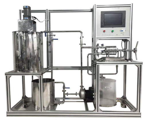 1、304衛(wèi)生級不銹鋼板框:共4塊框2塊洗滌板3塊非洗滌板,800目工業(yè)濾布。 2、304衛(wèi)生級不銹鋼漿料罐:φ400×600mm,電機拌漿。 3、調速電機:電壓AC220V,功率90W,攪拌器轉速:0-200r/min。 4、304衛(wèi)生級不銹鋼洗水罐:φ159×500mm,臥式貯罐。 5、濾液量采用稱重傳感器自動測量裝置,在一組實驗中,可自動采樣測量濾液量數據,也可通過計量槽測定,計量槽由有機玻璃制成,容積:約15L,配刻度管,頂部帶蓋。 6、壓力傳感器,測量范圍:0-0.4MPa,精度0.5級,4-20mA遠傳輸出。 7、溫度傳感器:Pt100,分辨率0.1℃,精度0.5%。 8、304不銹鋼離心泵:功率750W,最大流量7.2m3/h。 9、電器:接觸器、開關、漏電保護空氣開關。 10、管路:透明UPVC材質,壁厚2.5mm,耐壓≥0.3MPa。 11、閥門:UPVC球閥和UPVC球閥,耐壓≥0.6MPa。 12、中央處理器:執(zhí)行速度0.64μs,內存容量16K,功能:數據處理運算。 13、模擬模塊:高達16位分辨率,總和精度±0.5%,內建RS485通訊模式。 14、溫度模塊:分辨率0.1℃,精度0.5%,內建RS485通訊模式。 15、采用一體機平板觸摸電腦,全程數字化觸摸屏控制操作。HMI:投射式觸控技術,5000萬次觸摸點,內存2G,功能:中央處理器數據顯示控制。 16、額定電壓:220V,總功率:1.0KW。 17、外形尺寸:1800×550×1700mm(長×寬×高),外形為可移動式設計,帶剎車輪,高品質鋁合金型材框架,無焊接點,安裝拆卸方便,水平調節(jié)支撐型腳輪。 18、工程化標識:包含設備位號、管路流向箭頭及標識、閥門位號等工程化設備理念配套,包含安全警示標識,使學生處于安全的實驗操作環(huán)境中,學會工程化管路標識認知,培養(yǎng)學生工程化理念。 |