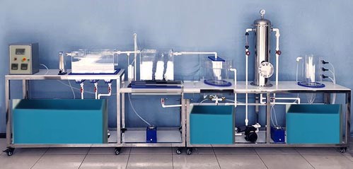 污水處理廠立體布置模型 / 廢水生物處理實驗裝置,以小型污水處理廠部分處理系統(tǒng)為原型,配置多斗初沉池、曝氣池、二沉池、砂濾裝置及濃縮池等。污水通過配水箱被提升至初沉池進行初級污泥沉淀,然后進至曝氣池進行接觸氧曝氣處理,曝氣通過小型空氣壓縮機,并通過風量計進行對曝氣量的控制。經(jīng)過曝氣池的污水再通過二沉池進行沉淀。再進入砂濾裝置進行過濾。最后進入濃縮池進行濃縮處理。學生通過對該污水處理廠立體布置模型系統(tǒng)的學習,可了解系統(tǒng)中典型污水處理系統(tǒng)的應(yīng)用,掌握各個系統(tǒng)的工作原理,進而具備設(shè)計污水處理廠各處理系統(tǒng)的能力。