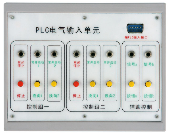 (4)輸入模塊:與PLC采用電纜9針232接口連接。連接后為PLC提供8路主令輸入信號(其中2路為常閉信號),及通過信號插孔為PLC提供自動控制信號。(如:行程開關(guān)位置信號等);輸出模塊:與PLC采用電纜9針232接口連接。通過輸出接口插孔控制電磁閥通斷;繼電器控制模塊:與電源模塊連接后,進(jìn)行主令信號控制,及提供自動控制信號接口進(jìn)行自動控制。通過輸出口插孔控制電磁閥通斷。