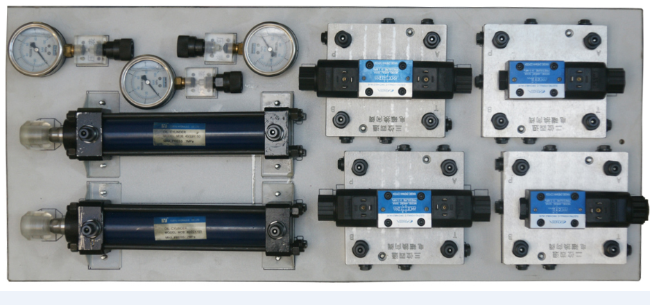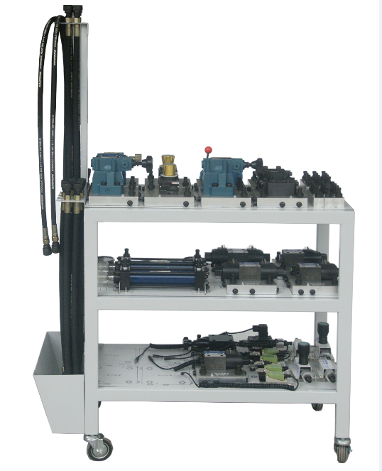 液壓實(shí)驗(yàn)元件主要采用北京華德液壓、天津天二液壓產(chǎn)品。便于了解掌握幾十種常用液壓元件的結(jié)構(gòu)、性能及用途。掌握幾十種基本實(shí)驗(yàn)回路的工作過(guò)程及原理。實(shí)驗(yàn)時(shí),組裝實(shí)驗(yàn)回路快捷、方便。同時(shí),配備獨(dú)立的繼電器控制單元進(jìn)行電氣控制,簡(jiǎn)單實(shí)用。