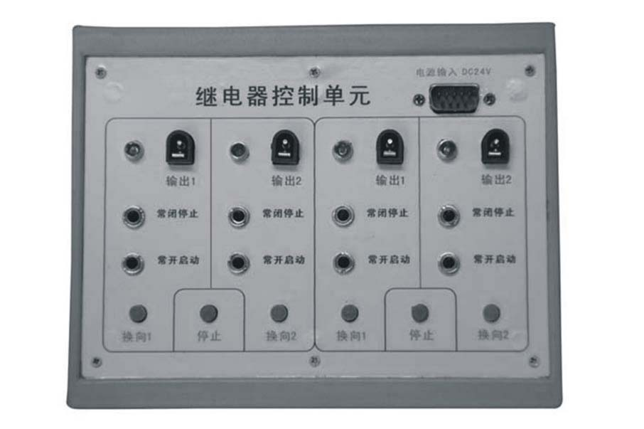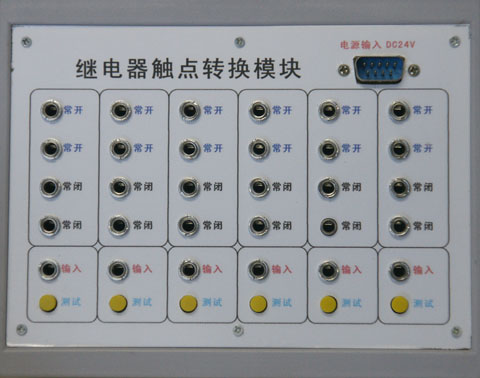 利用每組的測(cè)試按鈕作為主令按鈕,同時(shí)為繼電器控制模塊提供兩個(gè)常開(kāi)啟動(dòng)信號(hào)、兩個(gè)常閉信號(hào)。利用每組的輸入插孔,對(duì)接入的觸點(diǎn)開(kāi)關(guān)信號(hào)進(jìn)行轉(zhuǎn)換及擴(kuò)展。并可以輸入三線傳感器信號(hào)(正電源、負(fù)電源、信號(hào))。