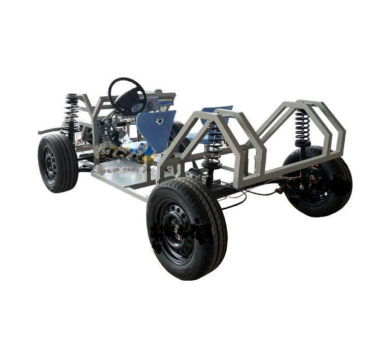 前橋總成、后橋總成、前懸架總成、后懸架總成、轉(zhuǎn)向系統(tǒng)總成、前驅(qū)手動變速器、車輪、驅(qū)動電機、剎車總泵、剎車分泵、剎車碟、離合器、變速器、等速半軸、掛檔機構、可移動鋁合金臺架。