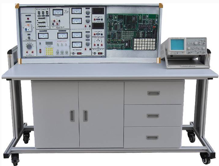 3、示教控制臺(tái) 1 臺(tái):由示教實(shí)驗(yàn)操作桌、實(shí)驗(yàn)臺(tái)、演示控制屏組成,能分別無線遙控控制 12 臺(tái)學(xué)生實(shí)驗(yàn)臺(tái)的電源。尺寸為 160 × 70cm 。
