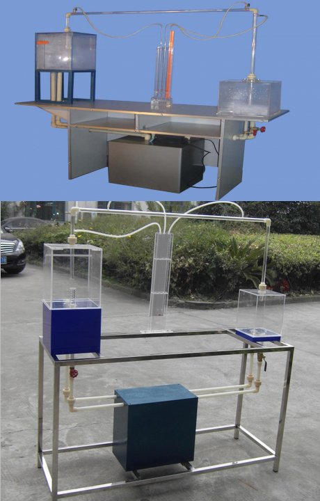 主要配置:移動式不銹鋼實驗臺;供水箱;水泵;低位水槽;高位水槽;虹吸管;測壓管等。