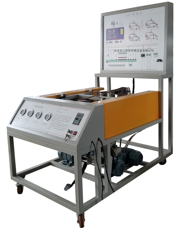 該設(shè)備由桑塔納2000ABS閥體總成、ABS控制單元、前碟后鼓制動機(jī)構(gòu)、輪速傳感器及信號盤;面板鐵柜、彩色原車電路原理圖、油壓原理圖、調(diào)速電機(jī)、變頻器及經(jīng)高溫噴塑處理帶滾輪臺架等組成。