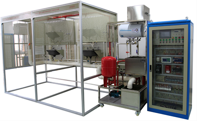 7.生活給水系統(tǒng):主要有給水箱、給水泵、給水管道、壓力變送器、脈沖水表、水龍頭和淋浴頭等組成。管路采用不銹鋼復(fù)合管進(jìn)行設(shè)計,可進(jìn)行不銹鋼復(fù)合管的切割、安裝和通水試驗(yàn)操作,通過控制系統(tǒng)可實(shí)現(xiàn)生活給水系統(tǒng)的變頻恒壓供水功能,實(shí)現(xiàn)單泵變頻控制或雙泵切換控制等功能;通過脈沖式水表可以完成用水量的計量。