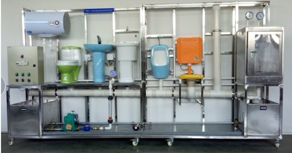 3 、排水系統(tǒng)由排水管道和水處理單元等組成。排水管路主要采用 UPVC 管進(jìn)行設(shè)計(jì),可進(jìn)行 UPVC 管的切割、粘接、安裝和通水試驗(yàn)操作。